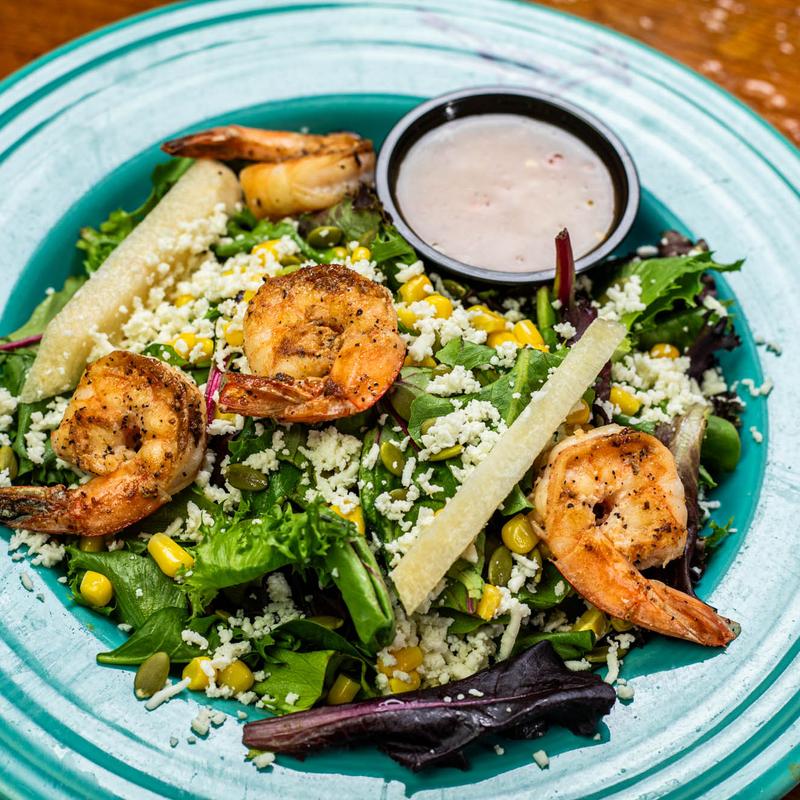 Spring mixed lettuce with jicama, corn, sliced avocado, and queso fresco tossed in our homemade dressing. Topped with tortilla strips | Add Beef, Chicken, or Shrimp Fajitas.
