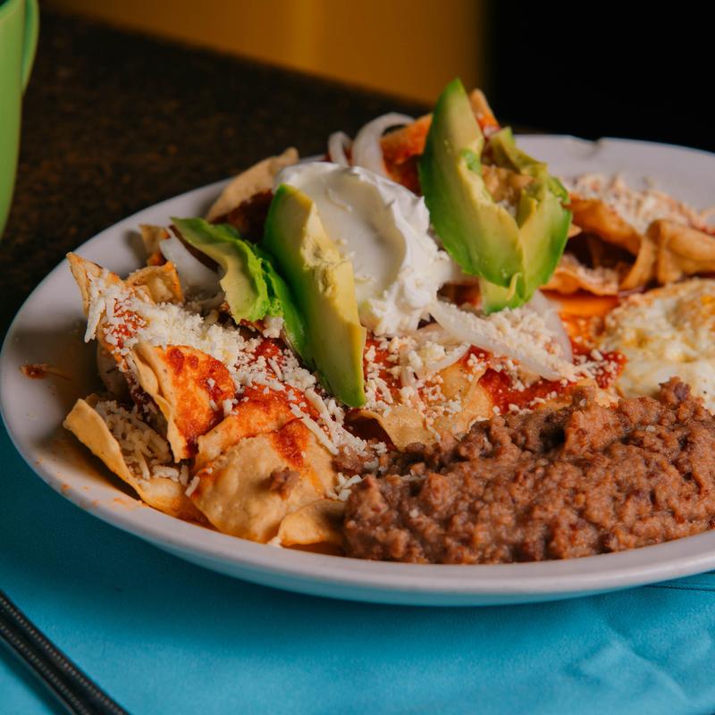 Four mini corn tortillas filled with jalapeño chicken garnished with cilantro, onion, queso fresco, and sliced avocado. Served with borracho beans.