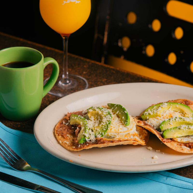 Two crispy corn tortillas, layered with refried beans, cheese, lettuce, and tomato • Add Picadillo Meat or Shredded Chicken | Add Beef or Chicken Fajita